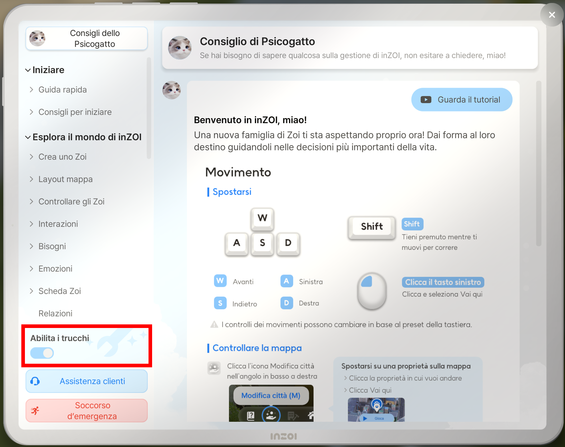 Per utilizzare i trucchi su inZOI, vai alla Guida Psicogatto e utilizza l'opzione Abilita i trucchi.
